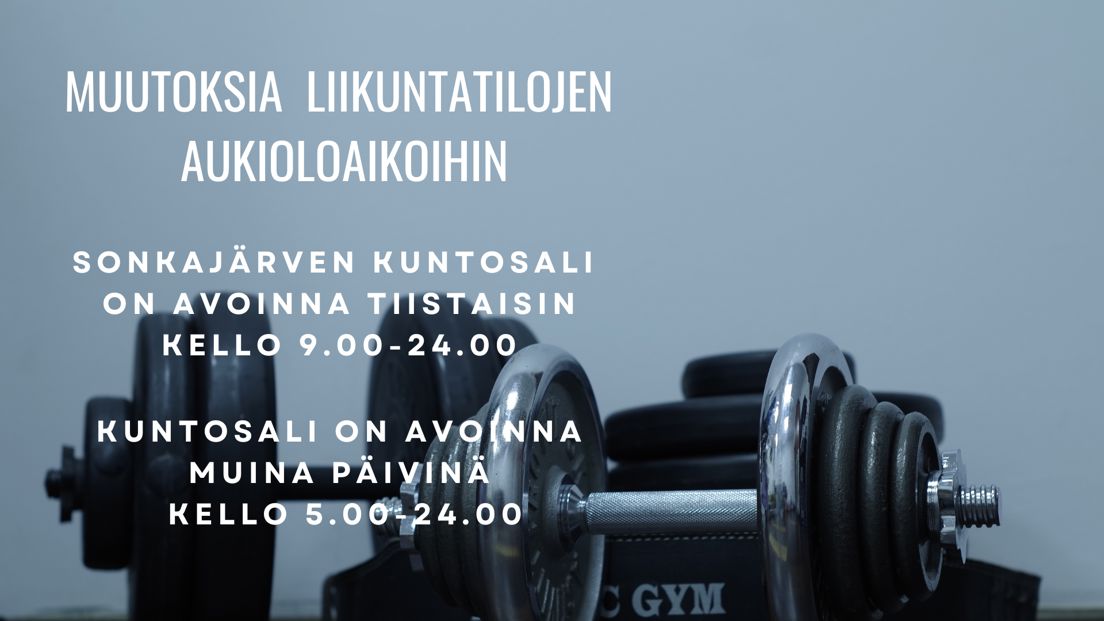 Sonkajärven kuntosalin aukioloaikoihin tulee muutoksia 12.11.2024 alkaen: